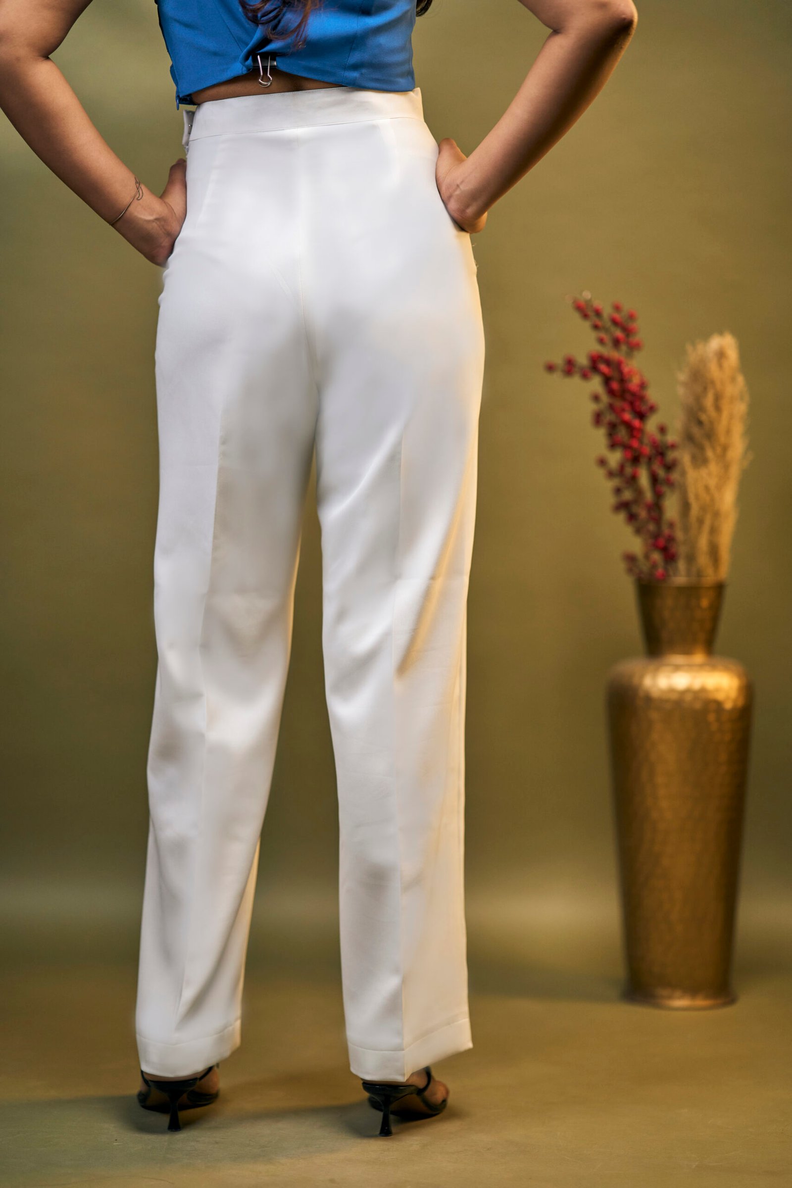 These straight formal trousers are the definition of effortless chic—sleek, flattering, and designed for all-day comfort. With a smooth, breathable feel and a flowy drape, they keep you looking sharp without sacrificing ease. Pocket-friendly yet polished, they’re your go-to for a classy, versatile look that works just as well in the boardroom as it does at brunch.