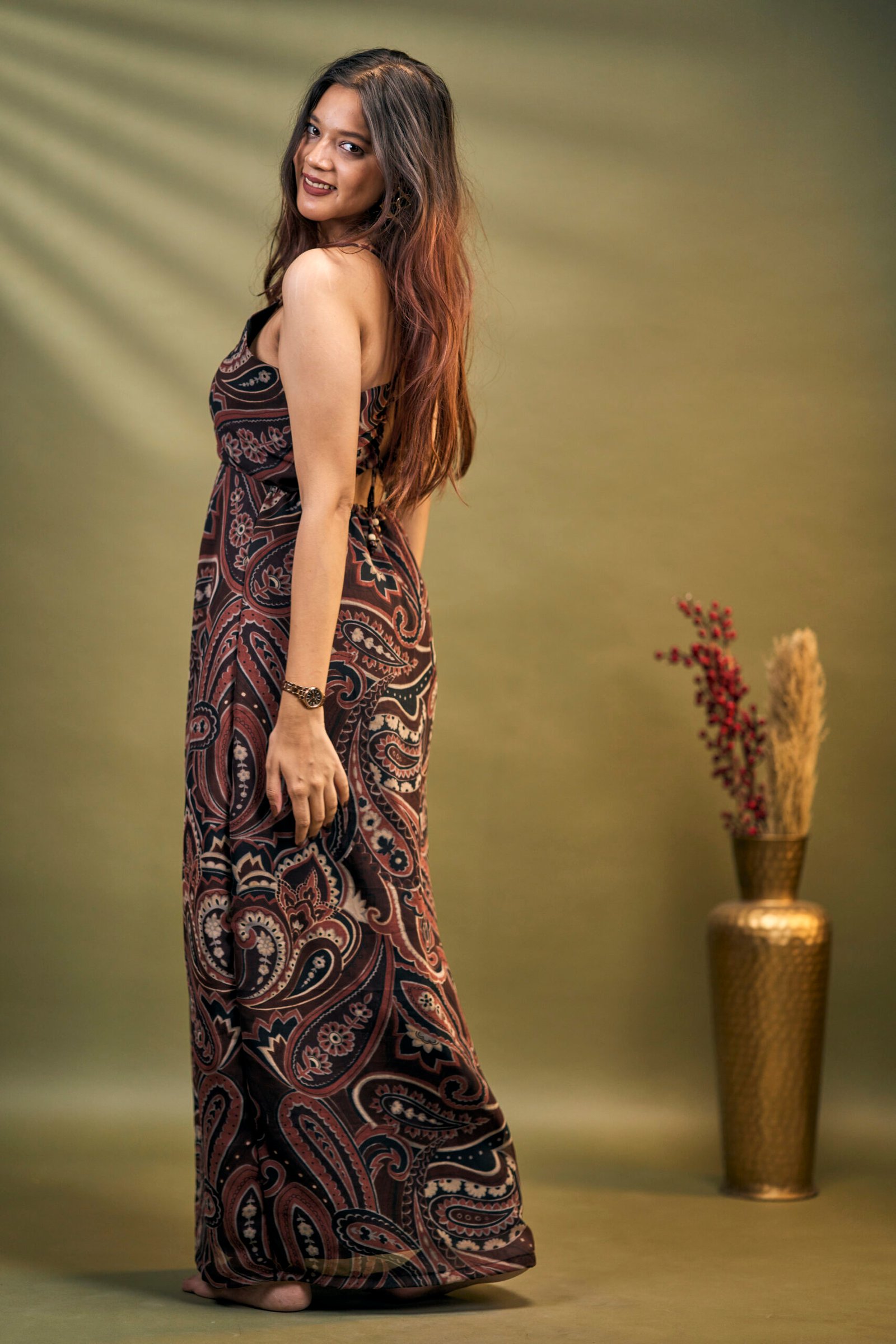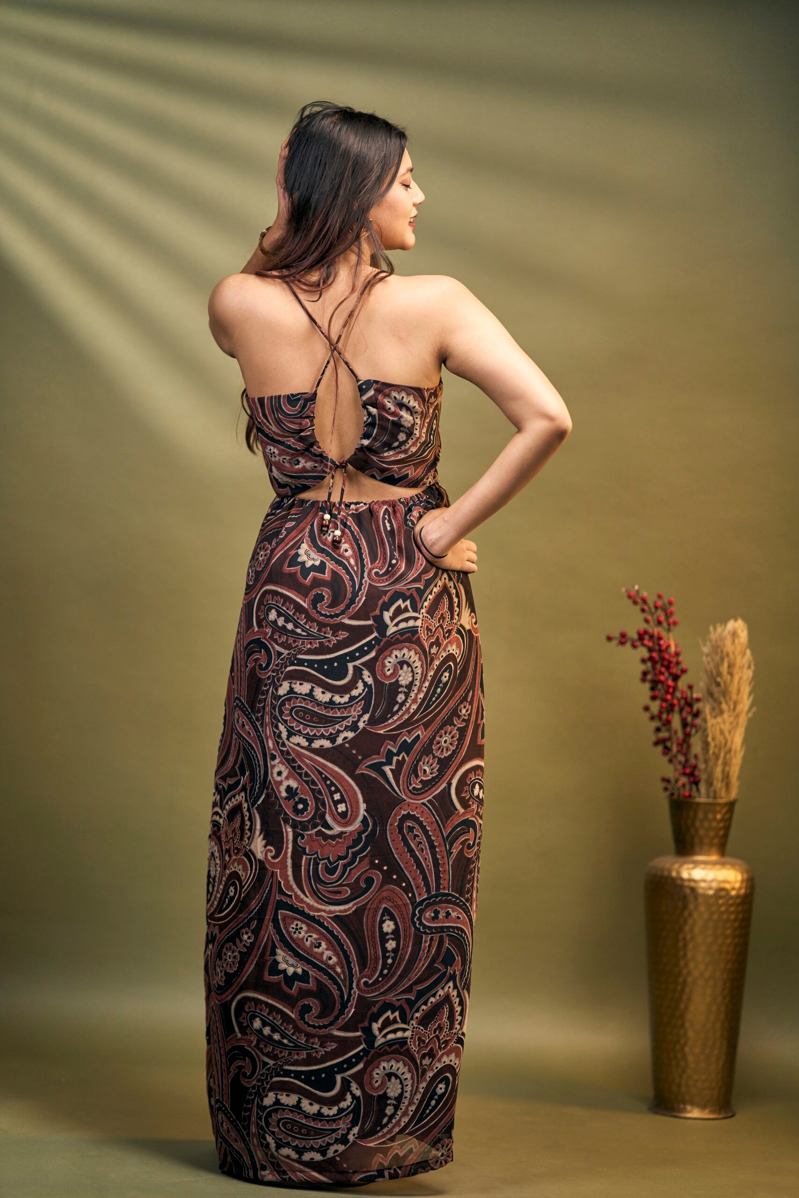 Serving curves with that angrakha-style front and a show-stopping open back. Adjustable straps? Check. Fit that flatters? Double check. This paisley georgette dream is all about effortless glam.