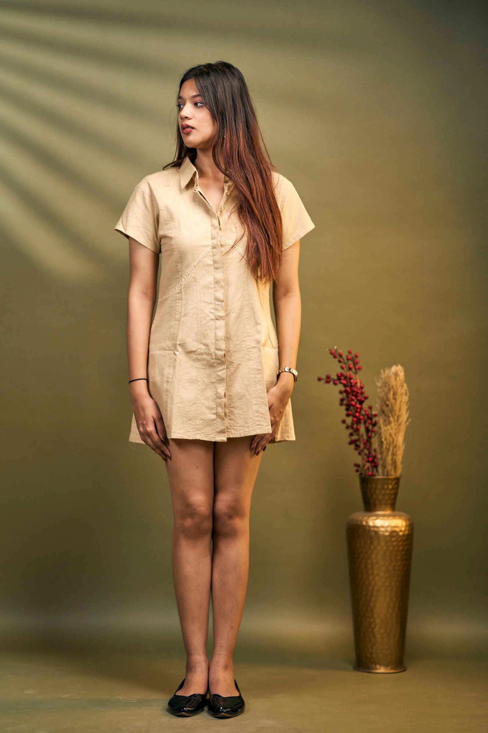 Clean lines, hidden buttons, and hand-embroidered sass. This panelled beauty keeps it cool, classy, and a little bit cheeky.