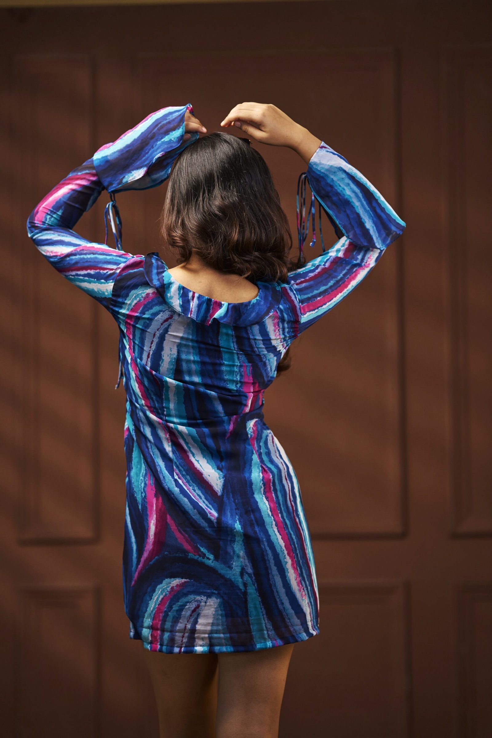 This georgette dress is pure fire! Ruffles on the panels and neckline, a flirty front knot, and long sleeves with a stylish cut and tie details. Confidence wrapped in vibrant style!